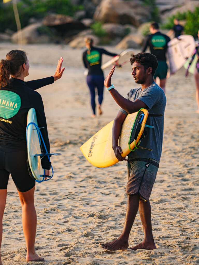 Thank you for your interest in Banana Surf Camp in Arugam Bay, Sri Lanka. We want to answer all your questions about Surf Camp, Surf Lessons, and anything else that may arise. Feel free to contact us anytime via WhatsApp, E-mail, Facebook, or Instagram. Alternatively, if you’re already in Arugam Bay, Sri Lanka, you can also stop by our shop on Main Street!